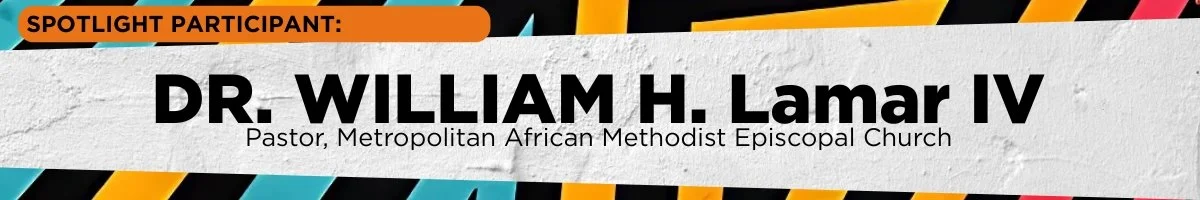 Rev. Dr. William H. Lamar IV has served since 2014 as pastor of Metropolitan African Methodist Episcopal Church, strengthening its growth and public witness through worship, liberation, and service. He helped launch the Lilly Endowment–funded Sankofa Christian Parenting Project and leads the church’s partnership with the Smart Surfaces Coalition to confront extreme heat and climate injustice in vulnerable communities. A Macon, Georgia native, he earned degrees from Florida Agricultural and Mechanical University and Duke University, and is pursuing a PhD at Christian Theological Seminary; he previously served as Managing Director of Leadership Education at Duke University Divinity School. A founding board chair of the Just Power Alliance, Lamar is a nationally recognized preacher, writer, and organizer, and author of Ancestors: The Names That Bless Us, Curse Us, and Hold Us (Broadleaf Books, 2026). He is married to Dr. Dana A. Williams, Dean of the Graduate School at Howard University.
